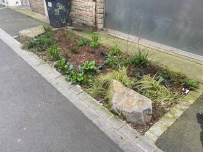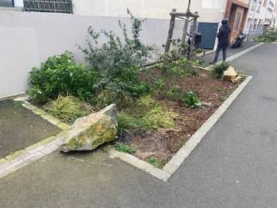 - Prévoir des zones “cultivables” par les habitants (aménagements propices à l'appropriation par les riverains dans le cadre de “jardiner ma rue : pieds d'arbres, pieds de façades…) ; Partiellement atteint. Pas de zones repérées, mais une invitation à contacter la mairie.