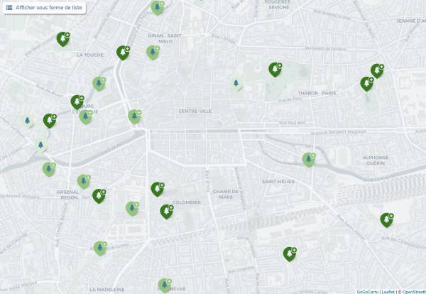 L'emplacement bénéficie déjà d'arbres superbes (platanes), mais le sol est imperméabilisé sur toute la surface du parking et la très grande majorité des ilots voisins (cependant, la taille des sujets et leur ancienneté permet de penser que leur système racinaire a directement accès à nappe au niveau de la Vilaine - information de Jean NABUCET, Ingénieur de recherche en géographie, membre du laboratoire LETG-Rennes - Université de Rennes 2).