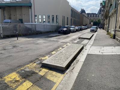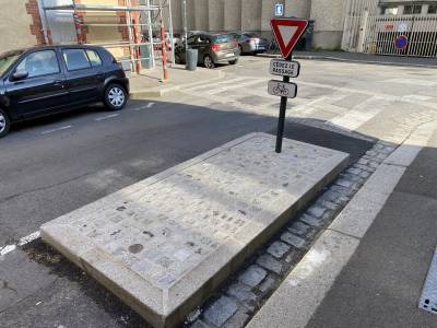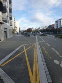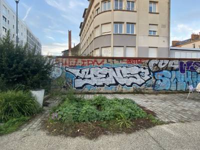 | Rue Denis et Eugene-Buhler : entre 3-14 et 16 | Photo | Présence du végétal / biodiversité | Bosquets, végétaux | Emplacements à étudier pour apporter des végétaux dans les zones très minérales de la rue | |