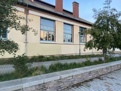 | Rue Alphonse Guérin | photos | Présence du végétal / Biodiversité | Plantations grimpantes | Végétalisation grimpante sur la façade sud du GRETA. La bande plantée est déjà présente, mais la végétation reste rase alors que le pignon est peu esthétique et souvent tagué | |