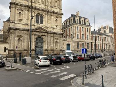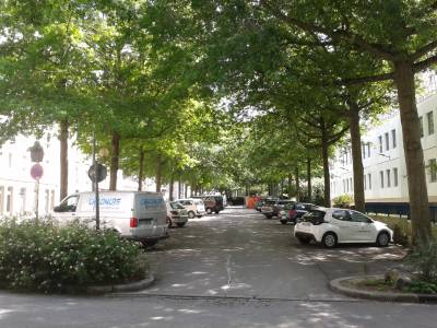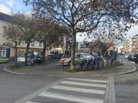 | Rue Dreyfus - Parvis Église Toussaint | photos | Arbres | Supprimer toutes ou parties des places de parking centrales pour planter des arbres |