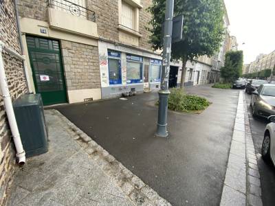 | Angle Rue St-Helier - Allée St-Hélier | photos | Présence du végétal / Ombrage | Arbre de grand développement | Planter un sujet de grande taille sur la sur-profondeur de trottoir devant le 96 rue St Hélier (ex. Pizza Sprint). Offre un perspective végétale à la circulation Est-Ouest de la rue St-Hélier | |