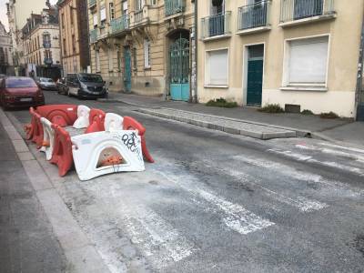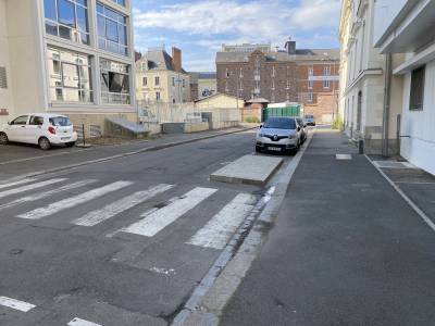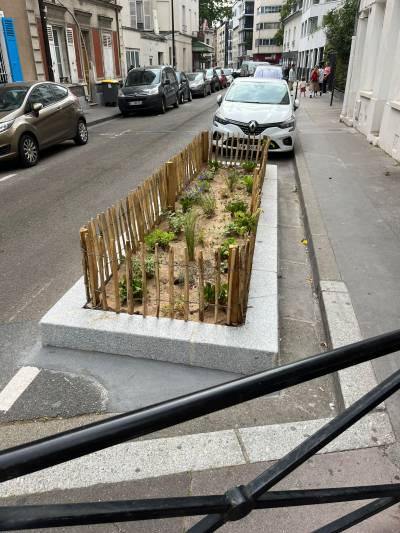 | Rue Duhamel - Rue Sauveur - Rue Dupont des Loges : Passages piétons | photos | Présence du végétal / biodiversité | Bosquet | Végétation basse (bosquets ou au moins couvre-sols) en remplacement des ilots minéraux crées récemment à l'approche des passages piétons | Interventions réalisées rapidement en application de l'obligation de neutralisation du stationnement motorisé dans les 5 m en amont du passage piéton d’ici au 31 décembre 2026. Modification / végétalisation envisageable à terme dans le cadre d'une réorganisation plus complète de la rue |