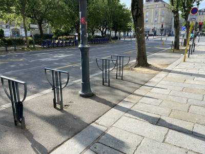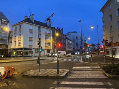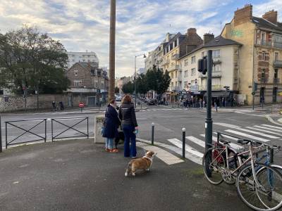 | Rue St Hélier - Parvis TNB | photos | Alignement d'arbres | important îlot de chaleur, absence de zone ombragée/zone d'attente devant le TNB et de passage pour rejoindre écoles, commerces de la rue Vasselo, etc | Réorganisation du carrefour St Helier - Janvier envisagée à moyen terme | |