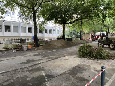 | Rue Betrand Robidou | photos | Ombrage | Arbres de grand développement | Reconfigurer la zone de stationnements coté Est de la voie, devant la cour de l'école Picasso, pour implanter plusieurs arbres de grand développement apportant de l'ombre et de la fraicheur pour la cour de l'école | |
