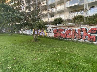 | Pré des Bonnets Rouges | photos | Présence du végétal / Biodiversité | Plantations grimpantes | Végétalisation grimpante taller une bande de plantes grimpantes au pied des treillis métalliques couvrant le soubassement des immeubles voisins | |
