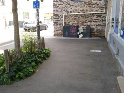 | 1 Rue Sebillot | Photo | Présence du végétal / biodiversité | Arbre, bosquets, végétaux | A l’entrée de rue, emplacement possibles pour arbuste, végétaux selon possibilité | |