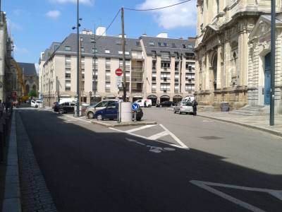 | Rue- F-C Oberthur face au 1 | Photo | Présence du végétal / biodiversité | Arbre, végétaux | Face au parking aérien, belle possibilité de planter en supprimant une seule place de parking | |