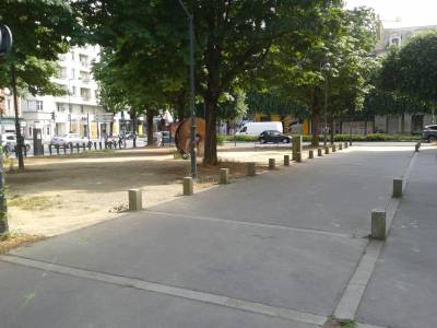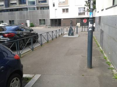 | 3 Rue-Edouard-Jordan | Photo | Présence du végétal / biodiversité | Bosquets, végétaux | L’espace suffisant pour se garer sur le trottoir pourrait être récupéré pour être végétalisé (photo) | |