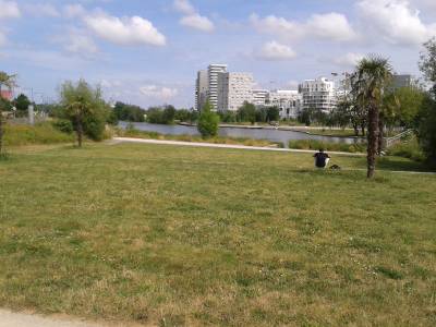 | 69 rue Dupont des Loges | photos | Ilot de Fraicheur | Aménagement des berges | Aménagement d'une aire de détente - ilot de fraicheur à la pointe de l'ile - jonction entre le bras principal et le bras de rivière allant vers l'écluse | |