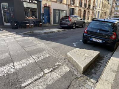 | Rue-Lailler | Photo | Présence du végétal / biodiversité | Arbre | Amélioration possible par extension des zones végétalisées sur quelques places de stationnement pour planter des arbres | |