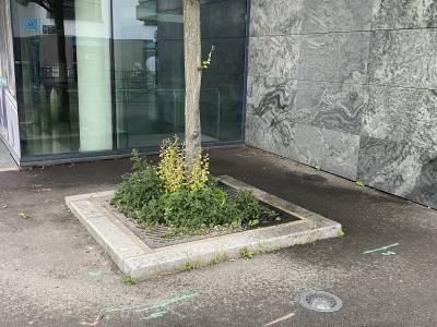 | Promenade des Bonnets Rouges / Angle allée Georges Palante | photos | Présence du végétal / Biodiversité | Arbre | Plantation d'un arbre haut dans le triangle végétalisé qui en est dépourvu | |